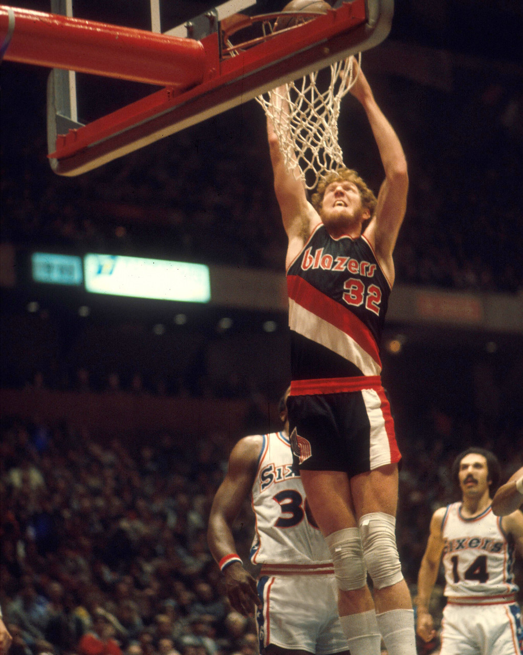 至少在比爾-沃頓的雙腳傷病徹底毀了他的職業(yè)生涯之前,開拓者在1977年憑借他的出色表現(xiàn)奪得了總冠軍。從某種意義上說,有人可能會(huì)認(rèn)為,沃頓帶領(lǐng)開拓者戰(zhàn)勝“J博士”歐文率領(lǐng)的76人這一事實(shí),讓他比恩比德更“出色”。但這并不能改變另一個(gè)事實(shí),那就是沃頓因?yàn)閭∪毕苏膫€(gè)賽季,在他出戰(zhàn)的10個(gè)賽季中,有9個(gè)賽季出戰(zhàn)場次不超過67場。