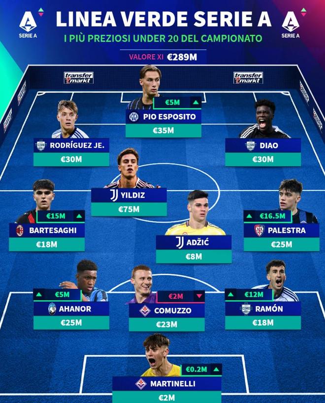 - 德轉(zhuǎn)列意甲U20最佳11人:伊爾迪茲領(lǐng)銜,皮奧、巴爾泰薩吉入選