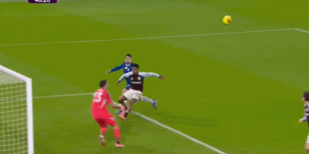 第84分鐘,蒂勒曼斯角球傳中,落點恰到好處,沃特金斯甩頭攻門,桑切斯鞭長莫及,維拉連扳2球,2-1!