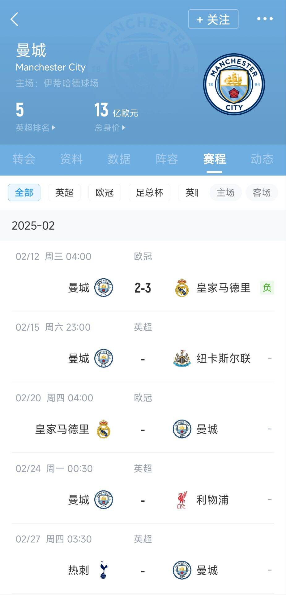 當(dāng)頭一棒!曼城魔鬼賽程首戰(zhàn)遭絕殺,后續(xù)對手:紐卡皇馬紅軍熱刺 足球新聞 2025年02月12日 17:46 02月12日訊 曼城在歐冠附加賽的首回合2-3不敵皇馬,藍(lán)月亮的魔鬼賽程首戰(zhàn)告負(fù)。接下來,曼城將要面對的是:紐卡、皇馬、利物浦、熱刺…… 上一條:戴維森即插即用貢獻傳射,青島西海岸2-1擊敗阿聯(lián)酋頂級聯(lián)賽隊伍 下一條:尤文名宿:在佩里西奇進球之前,埃因霍溫球員諾亞-朗手球犯規(guī)