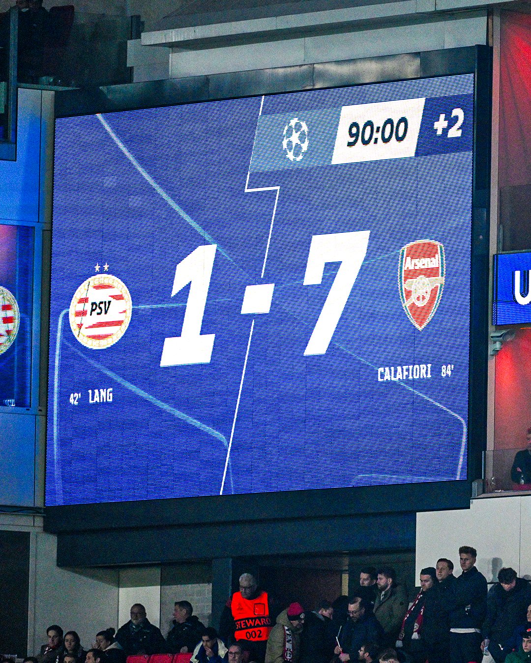 計(jì)算題:阿森納7-1埃因霍溫,埃因霍溫3-1尤文,那阿森納vs尤文幾比幾?
