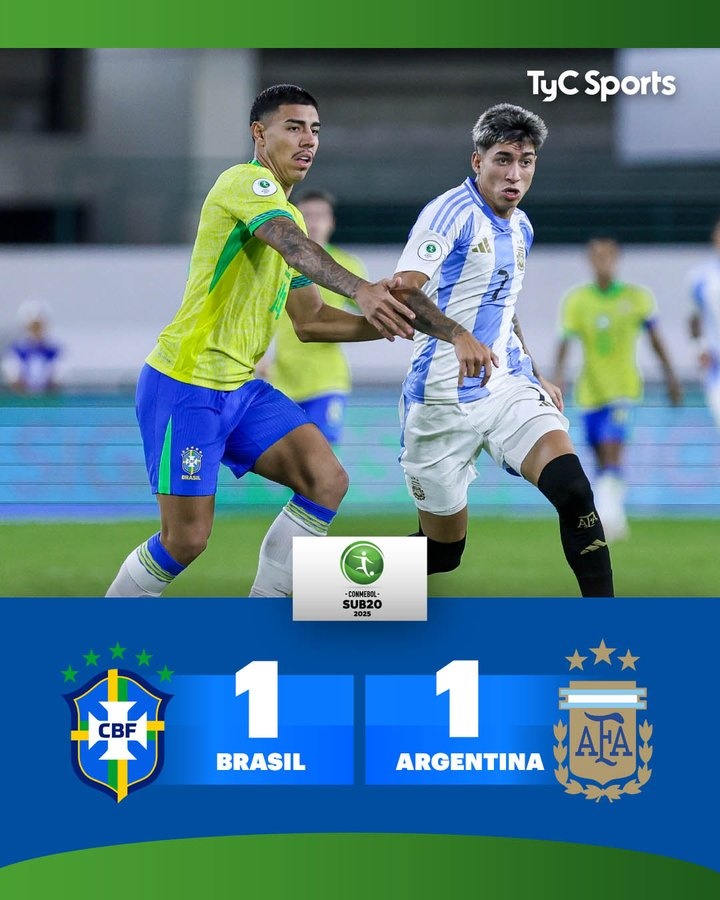 本場比賽,阿根廷憑借埃切維里的點球取得領(lǐng)先,但巴西隨后扳平比分,兩隊最終戰(zhàn)成1-1平。