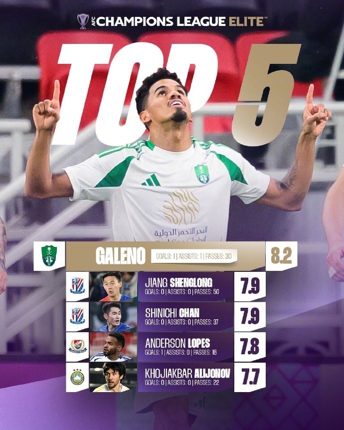 亞冠1/8決賽首回合評分:蔣圣龍、陳晉一7.9分并列第二 足球新聞 2025年03月10日 17:27 3月10日訊 亞冠官方公布亞冠精英聯(lián)賽1/8決賽首回合評分榜,蔣圣龍、陳晉一進入前五,兩人幫助申花主場1-0擊敗川崎前鋒占得先機。附亞冠周評分:1、加萊諾(吉達國民)8.2分:1球1助攻30次傳球2、蔣圣龍(上海申花)7.9分:50次傳球= 陳晉一(上海申花)7.9分:37次傳球4、安德森-洛佩斯(橫濱水手)7.8分:1球16次傳球5、阿里若諾夫(塔什干棉農(nóng))7.7分:22次傳球 上一條:博主:國安結(jié)束8天假期,今日吹響集結(jié)號&教練組已抵達駐地 下一條:北青體育:受狂歡節(jié)影響塞鳥退籍尚未完成 13日前入籍才能對沙特