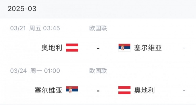 奧地利歐國聯(lián)賽程:
