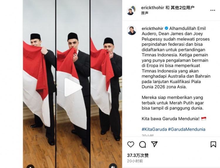 據(jù)印尼足協(xié)主席托希爾社媒消息,印尼足協(xié)已經(jīng)收到國際足聯(lián)正式來函,迪恩-詹姆斯、埃米爾-奧德羅、喬伊-佩盧佩已經(jīng)完成了會(huì)籍轉(zhuǎn)換,他們有可能為印尼隊(duì)出戰(zhàn)3月份的18強(qiáng)賽比賽。