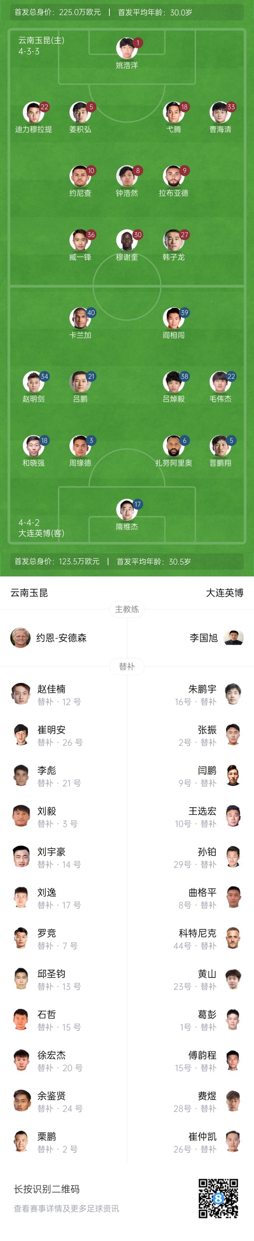 大連英博替補:16-朱鵬宇、2-張振、9-閆鵬、10-王選宏、29-孫鉑、8-曲格平、44科特尼克、23黃山、1-葛彭、15-傅韻程、28-費煜、26-崔仲凱