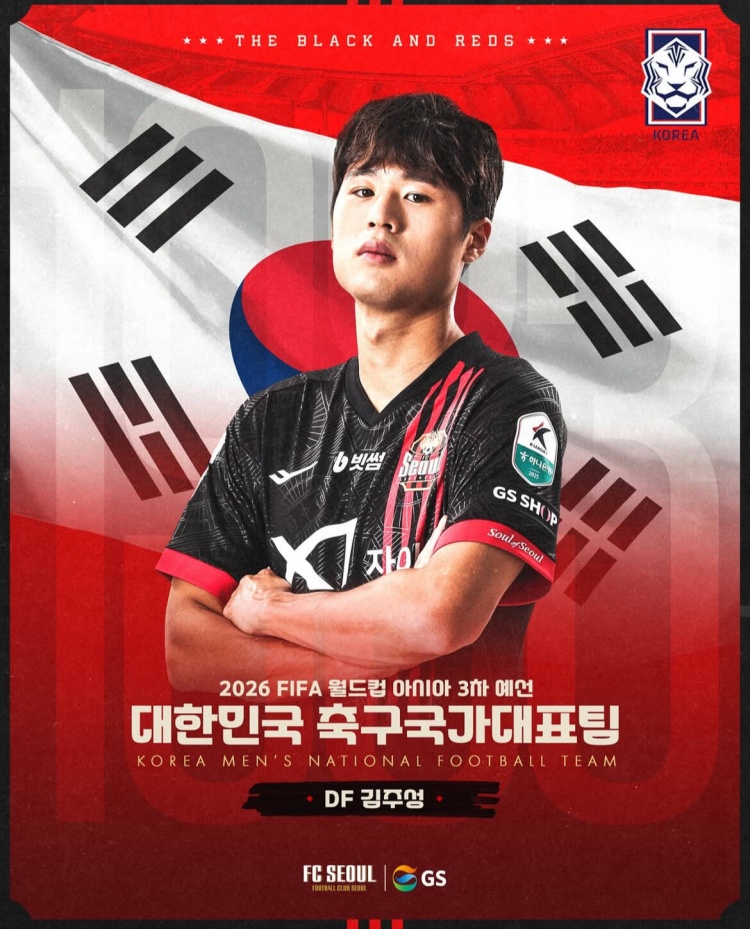 在球員入選后,首爾FC官方ins發(fā)布海報祝賀球員入選韓國隊,并配文寫道:“今日,韓國國家隊發(fā)布公告,宣布我隊后衛(wèi)金朱晟補充入選球隊大名單,他將隨隊參加3月份的兩場18強賽。請向他送上支持和鼓勵!”