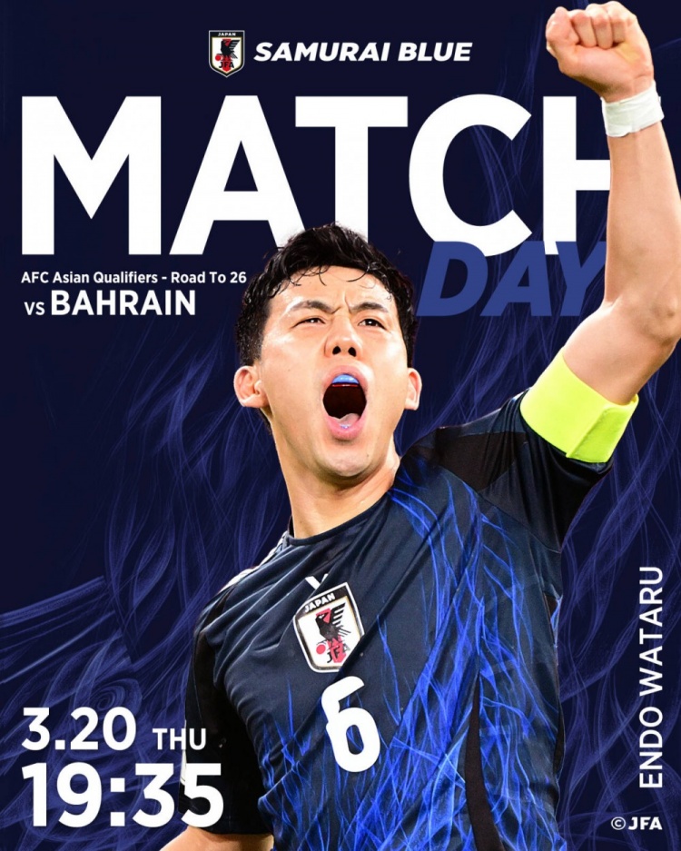 今日日本國家隊(duì)官推公布了本場(chǎng)比賽的海報(bào),隊(duì)長(zhǎng)遠(yuǎn)藤航獨(dú)自入鏡,海報(bào)中他振臂高呼,志在為球隊(duì)帶來勝利。日本隊(duì)官推為海報(bào)配文寫道:“目標(biāo)是連續(xù)出戰(zhàn)8屆世界杯,讓我們朝著這個(gè)目標(biāo),與藍(lán)武士并肩作戰(zhàn)吧!”