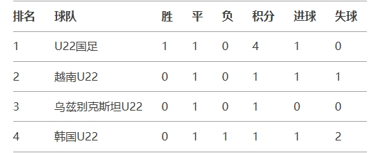 U22邀請賽積分榜:U22國足1勝1平0失球暫居第一,末輪對陣越南