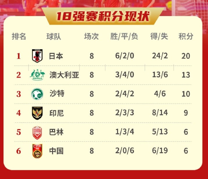 3月26日訊 18強(qiáng)賽第8輪,國(guó)足主場(chǎng)0-2不敵澳大利亞,暫時(shí)排名小組墊底?!蹲闱驁?bào)》撰文分析了國(guó)足出線形勢(shì),如果下輪輸給印尼將提前出局。