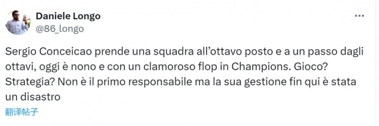 隆戈:米蘭聯(lián)賽排名下降+歐冠出局,孔塞桑至今的執(zhí)教堪稱災(zāi)難 足球新聞 2025年03月31日 19:52 3月31日訊 米蘭跟隊(duì)記者隆戈社媒發(fā)文,批評了孔塞桑在米蘭的執(zhí)教表現(xiàn)。隆戈寫道:“孔塞桑接手了一支排名聯(lián)賽第8名,并且?guī)缀鯐x級歐冠16強(qiáng)的球隊(duì),如今球隊(duì)排名聯(lián)賽第9名,歐冠慘淡出局。比賽風(fēng)格?戰(zhàn)術(shù)策略?他不是首要責(zé)任人,但到目前為止,他的執(zhí)教是一場災(zāi)難?!?/p> 上一條:姆巴佩會成為史上最佳嗎?安帥:很難,他能實(shí)現(xiàn)C羅在皇馬的成就 下一條:返回列表