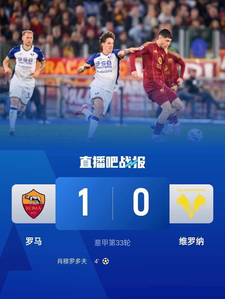 意甲第33輪,羅馬1-0維羅納,肖穆羅多夫閃擊。